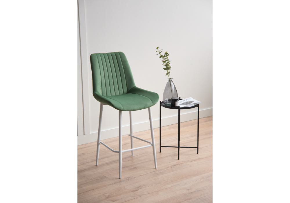 Материал каркаса - металл; Материал сиденья - велюр; Материал обивки - велюр; Цвет ножек - белый; Ширина - 49; Глубина - 57; Высота - 102; Ширина сиденья - 47; Глубина сиденья - 41; Высота сиденья - 63;