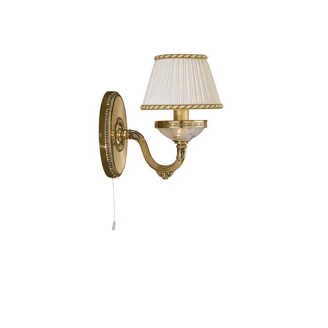 Бра Reccagni Angelo A 6502/1 Итальянского производсва – уникальное сочетание высокого качества и удивительных фактур. Этот светильник Классического стиля хорошо подойдет Для гостиной и придаст помещению мягкий и приятный свет. Плафоны белые из ткани. Арматура золотая из металла. Кол-во ламп - 1шт. Общая мощность 60W