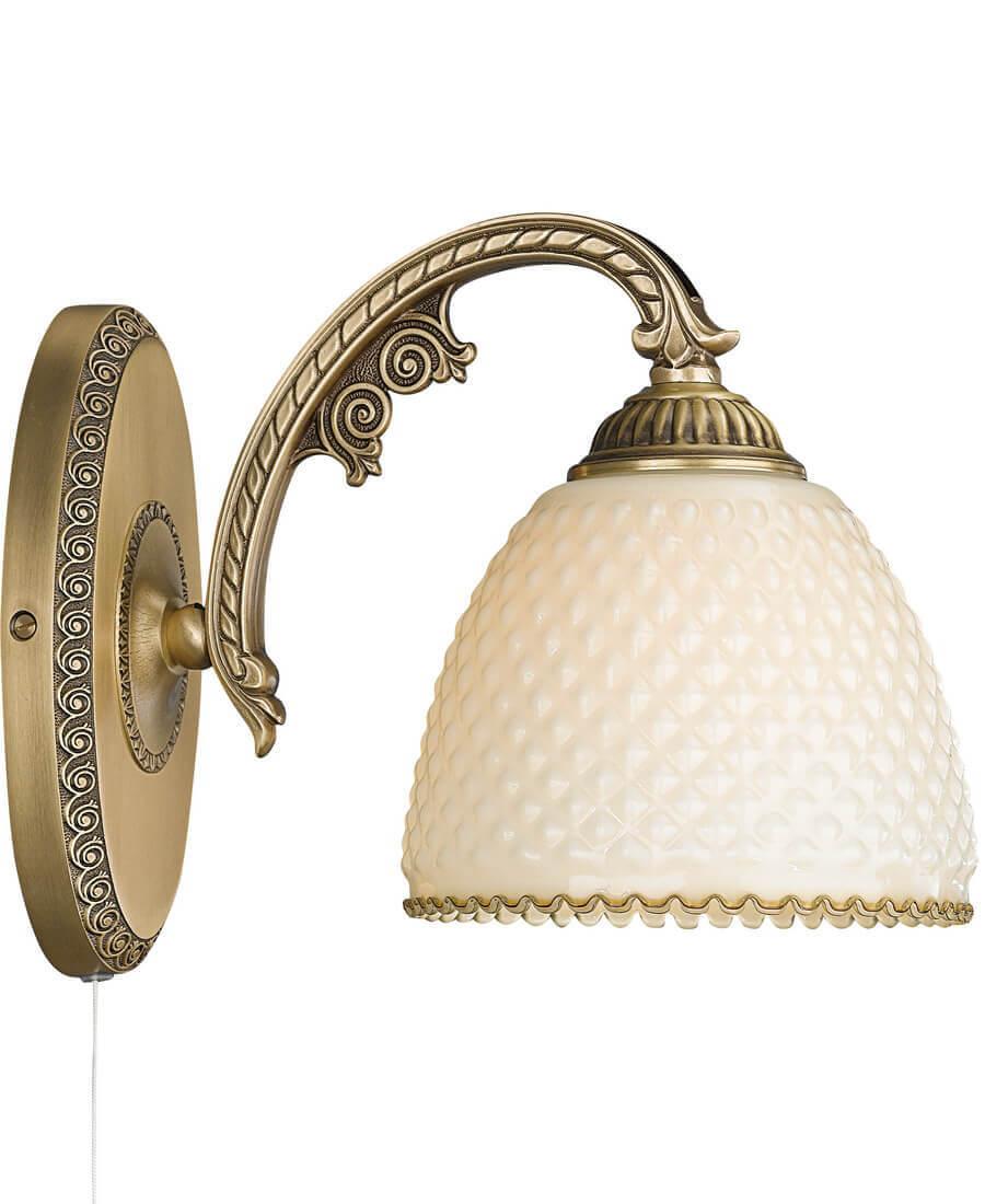 Бра Reccagni Angelo A 7005/1 Итальянского производсва – лучшее соотношение цена-качество. Этот светильник Классического стиля хорошо подойдет Для гостиной и придаст помещению мягкий и приятный свет. Плафоны белые из стекла. Арматура бронза из металла. Кол-во ламп - шт. Общая мощность 120W