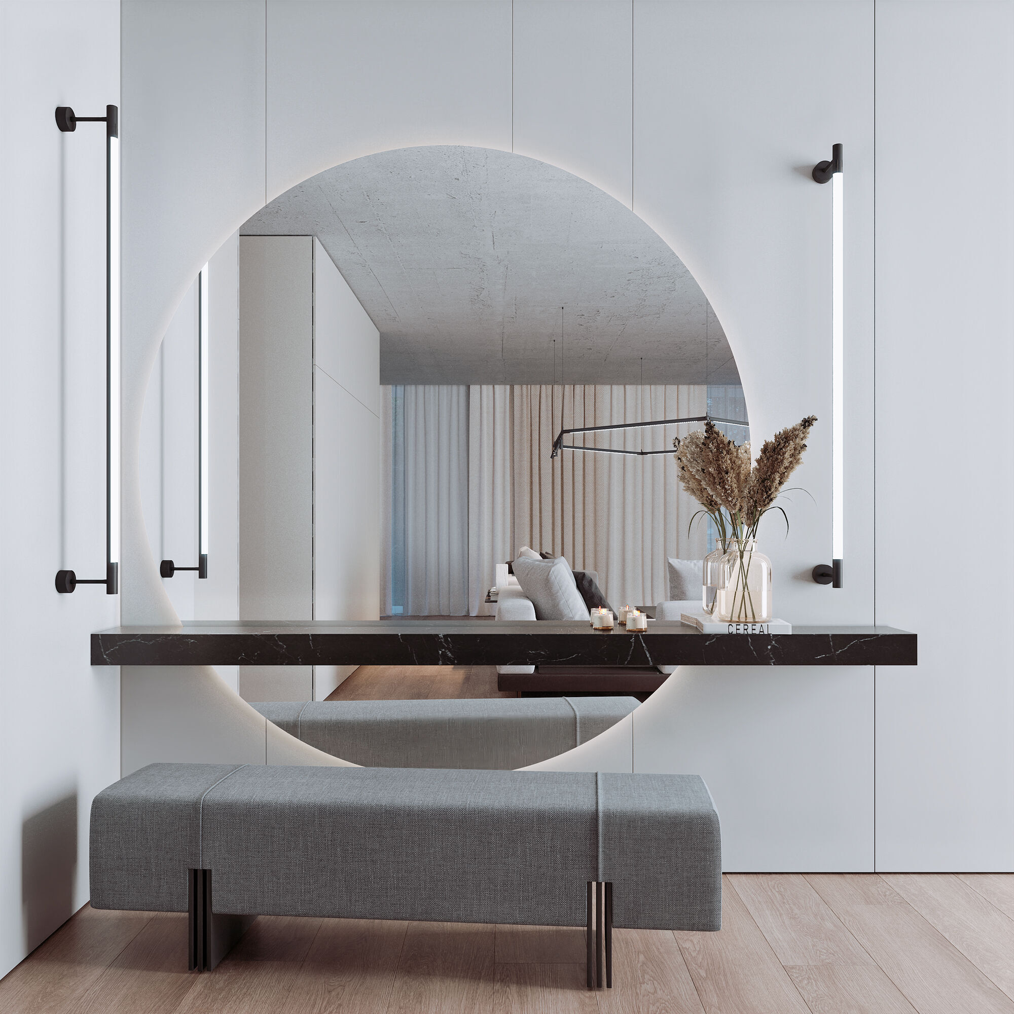 Module System подходит для готового ремонта благодаря накладному монтажу. Монтируется на декоративных гибких стойках и подвесах с возможностью регулирования высоты, к которым крепятся световые модули.