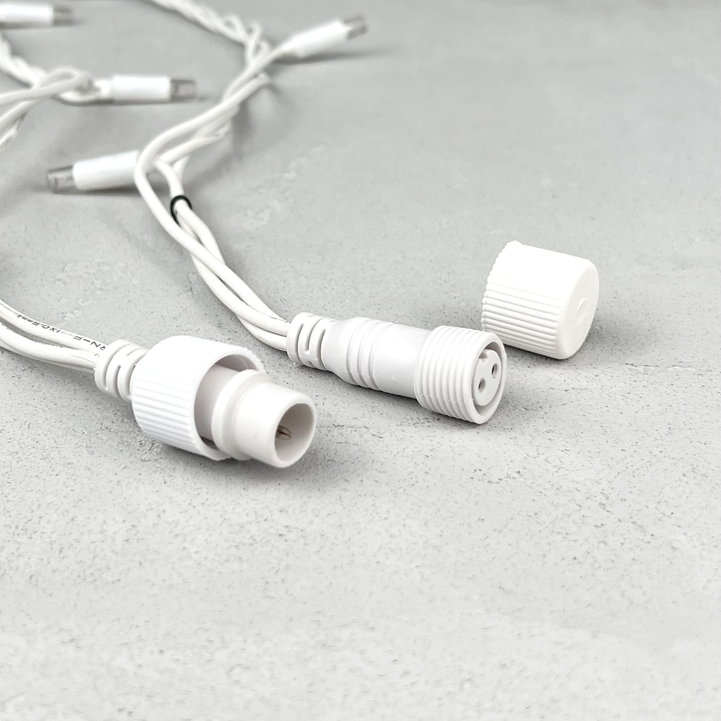 Гирлянда Нить с Колпачком 10м Тепло-Белая с Мерцанием Белого Диода, 300 LED, Провод Белый Каучук, IP65 LTC PST300BLWCAP-18-2WW в Твери