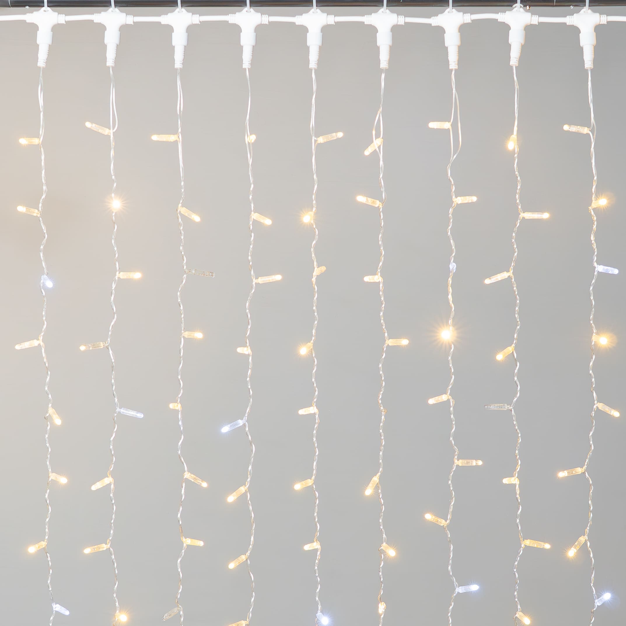 Купить "Гирлянда Занавес 1 x 6 м Золотой с Мерцанием Белого Диода, 600 LED, Провод Прозрачный ПВХ, IP54 LTC PCL601BLW-10-2GL"
