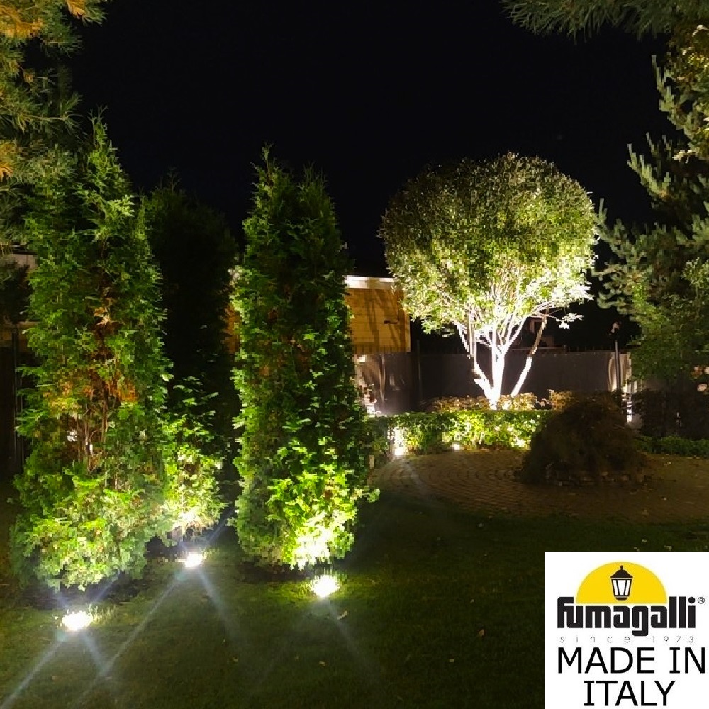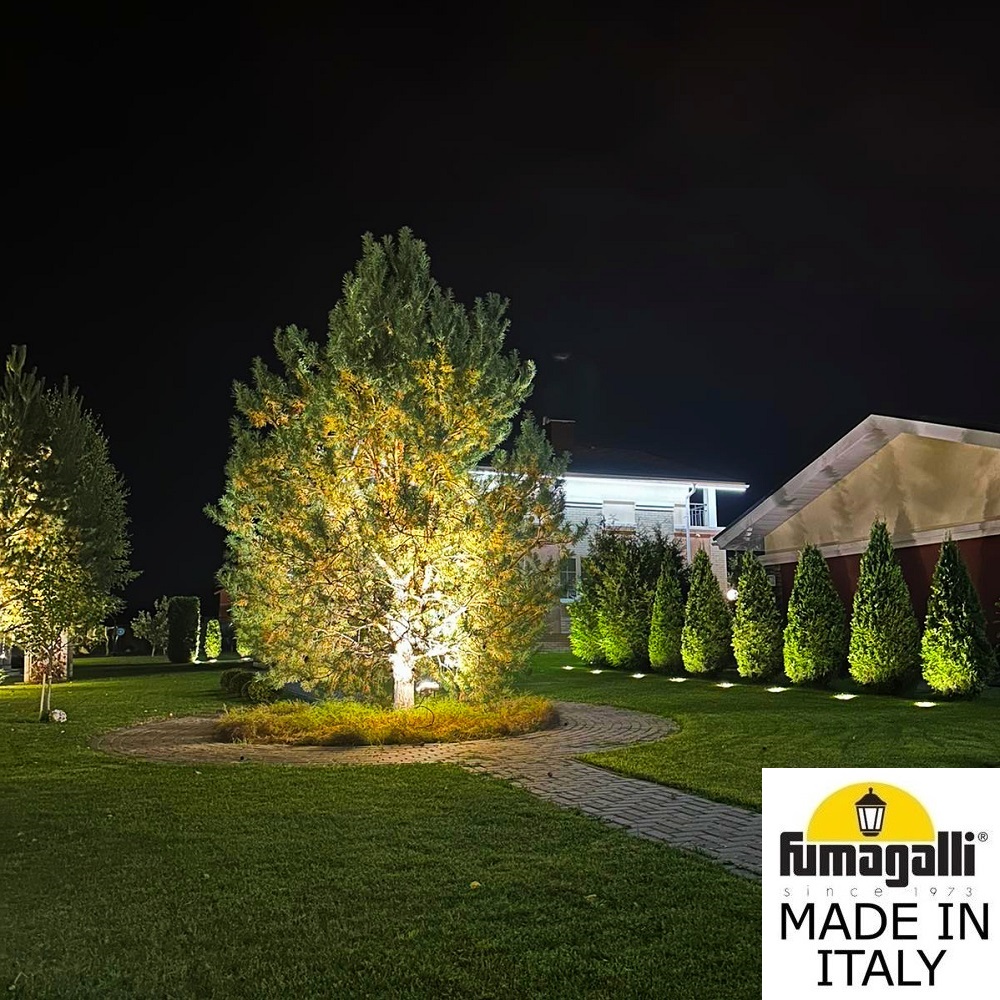Грунтовые светильники FUMAGALLI серии CECI, модель CECI 160 - изготовлены в Италии. Основное предназначение - подсветка снизу фасадов зданий, элементов ландшафта, кустов, деревьев, светового дизайна, освещения парковок и парковых дорожек. Так же может использоваться для декоративного и технического освещения внутри помещений. Устанавливается в дорожное покрытие, полы, отмостку фундаментов зданий, газоны и другие горизонтальные поверхности. Светильник CECI расчитан на сложные условия эксплуатации: на него можно наезжать автомобильным колесом, ходить по нему, светильник не боится льда, воды, механической уборки. Сначала в поверхность монтируется и закрепляется закладной элемент "стакан", в который выводится электрический провод. Далее в данный закладной элемент устанавливается сам уличный светильник CECI и подключается электропитание. Корпус изготовлен из современного вандалостойкого, негорючего полимера RESIN не требующего окраски. Прочного, окрашенного в массе, не ржавеющего и не выгорающего на солнце. Все светильники пыле-влаго защищены по стандарту IP66. Корпус ландшафтного светильника не проводит электричество, относится к 2 классу электробезопасности. Рассеиватель выполнен из антивандального, не мутнеющего и не горючего PMMA. Срок службы светильника - не менее 20 лет. Не требуется трансформатор. Напряжение питания - 220 В. Температура использования от -60 до +90. При заказе требуется выбрать цвет корпуса.