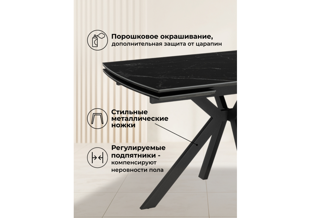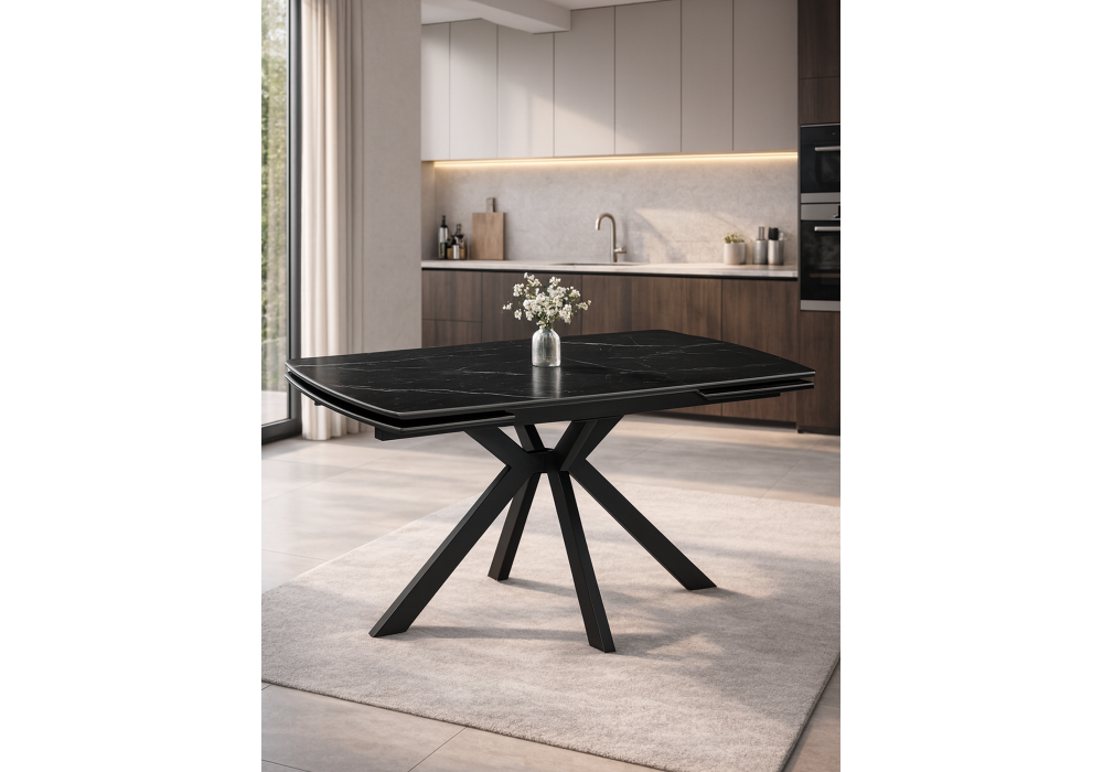 Керамический стол раздвижной 120(180)x8 Woodville Катчел-2 черный мрамор / черный 632673 в Твери