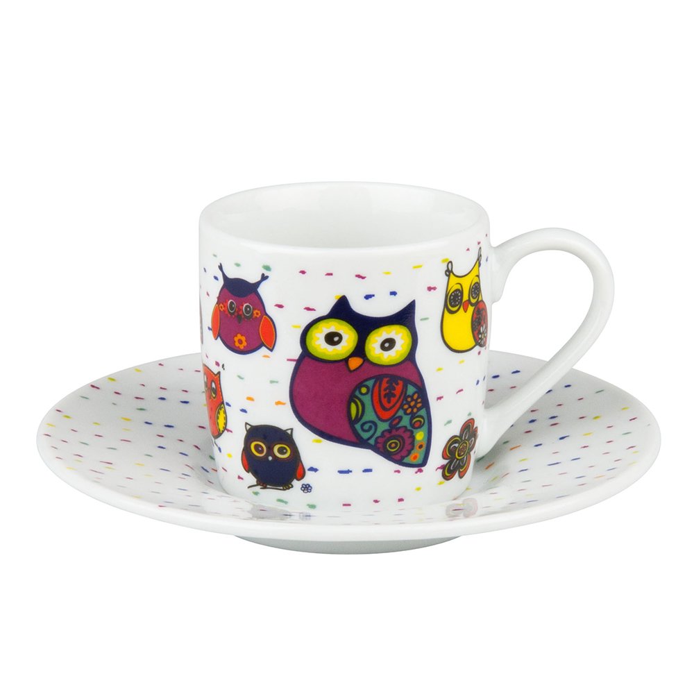 Купить "Кофейная пара эспрессо "Разноцветные животные - совы" Koenitz"