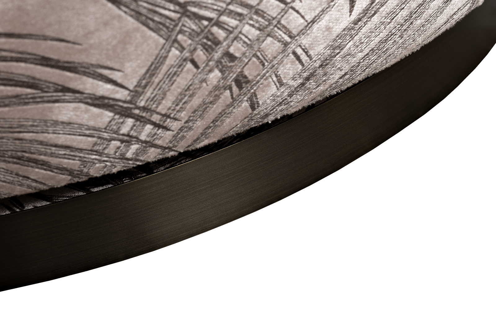 В стандартном исполнении: обивка - ткань вельвет из коллекции Garda Decor с дизайнерским принтом листья Valdes110-BEG, металлическое основание, цвет бронза.