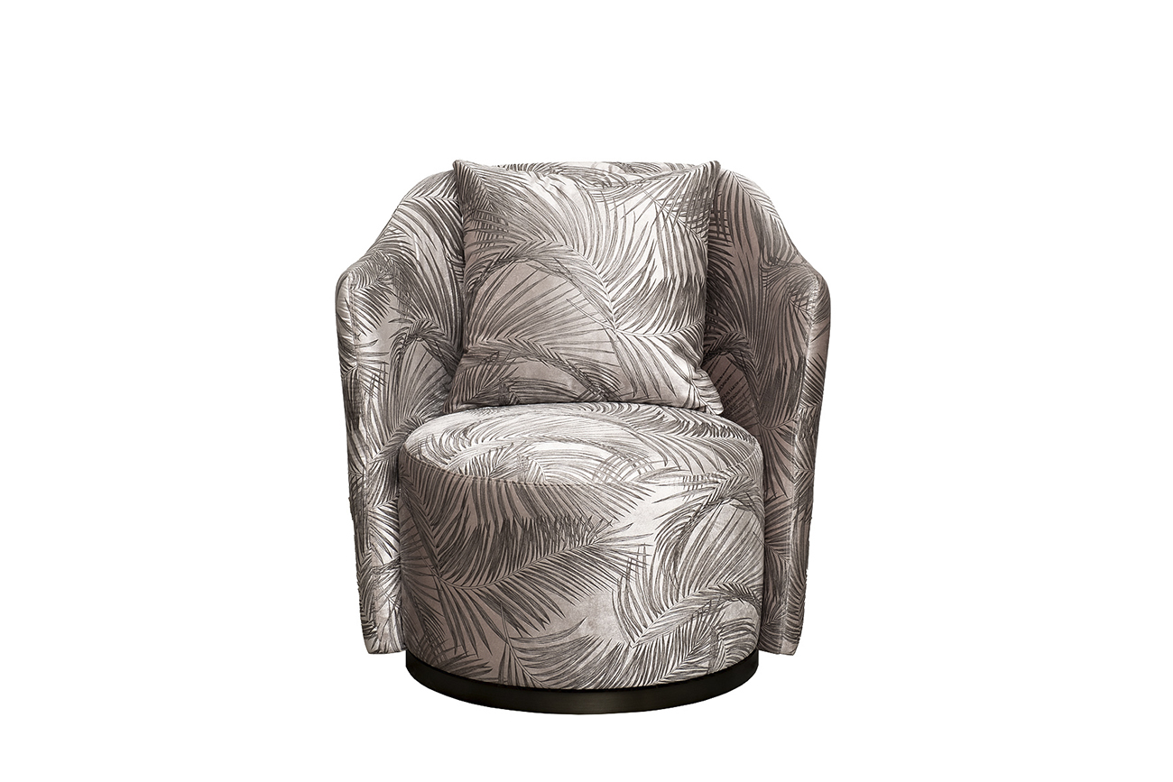 Красивое вращающееся кресло VERONA идеально подойдет для современного интерьера, в котором важную роль играет эксклюзивность и высокое качество мебели. За счет надежного механизма сидение легко вращается, делая кресло мобильным и удобным как для отдыха, так и для работы. Классическая эргономичная форма, спинка с подлокотниками, мягкая подушка делает дизайнерское кресло с принтом «пальмовые листья» отличным выбором для гостиной, спальни, холла. Оно будет эффектно смотреться в жилых интерьерах ар-деко, неоклассика, фьюжн, шебби-шик, контемпорари.
