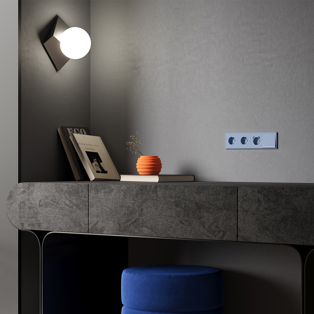 Купить "Накладка для розетки с заземлением и защитными шторками, с USB A+A Voltum S70 VLS000915 (деним)"
