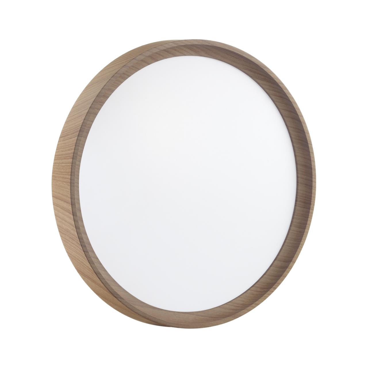 Светильник 7603/CLN линии WOODI состоит из металлического основания (базы) и пластикового рассеивателя. Материал рассеивателя - высококачественный пластик марки PMMA 2.0 белого цвета с матовой поверхностью, без текстуры. Пластик обеспечивает светильнику равномерное рассеивание и хорошее светопропускание. Форма плафона: круглая, декорирована ободом светло-коричневого цвета "под дерево". Степень защиты IP43 позволяет использовать светильник в определенных зонах влажных помещений. В комплект входит LED модуль с линзами, мощностью 36Вт, которая соответствует лампе накаливания 315Вт. Источник света имеет комфортную цветовую температуру 4000К (белый свет).