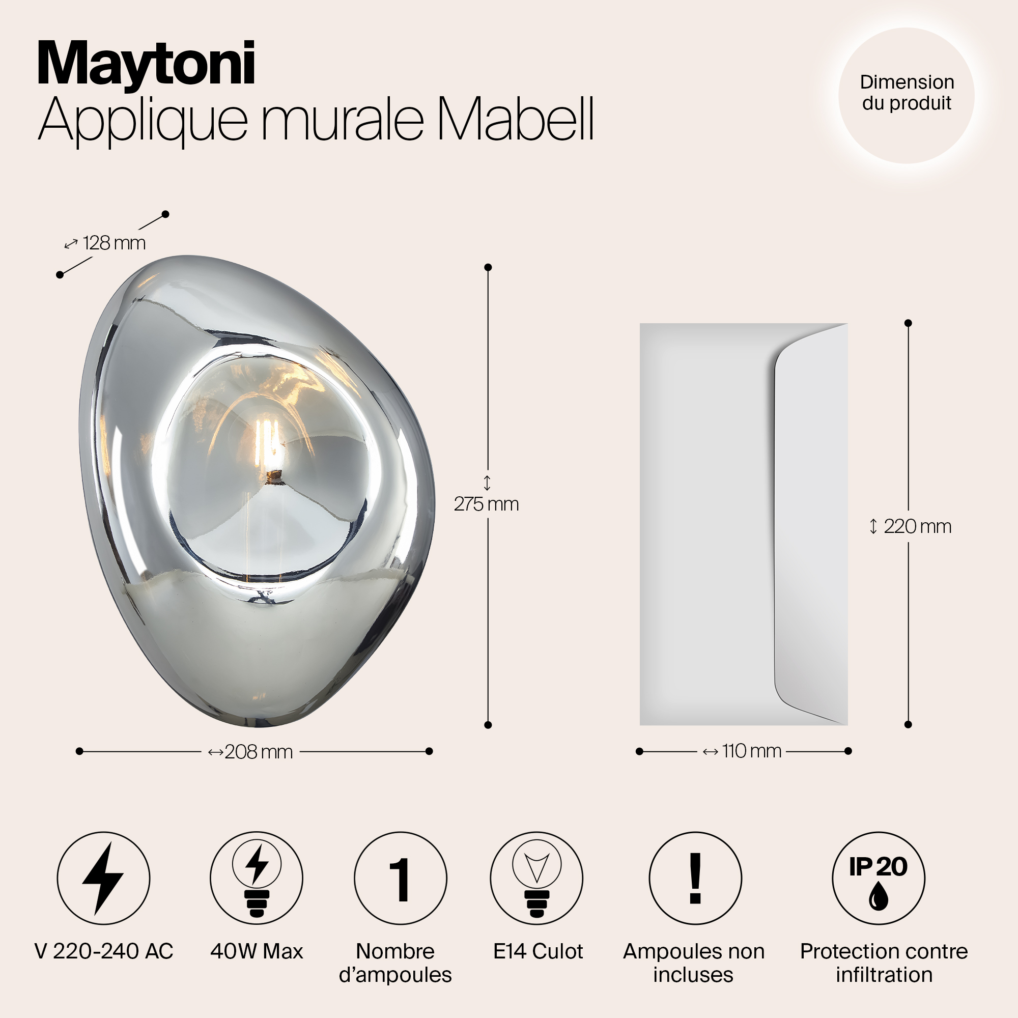 Купить "Настенный светильник Maytoni Mabell MOD306WL-01CH"