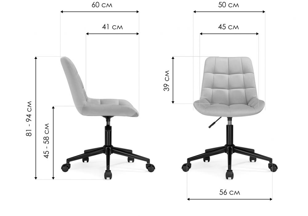 Высота спинки: 39 см. Материал каркаса - металл; Материал сиденья - велюр; Материал обивки - велюр; Цвет ножек - белый; Ширина - 50; Глубина - 60; Высота - 81; Ширина сиденья - 45; Глубина сиденья - 41; Высота сиденья - 45; Высота спинки - 39; Высота максимальная - 94;