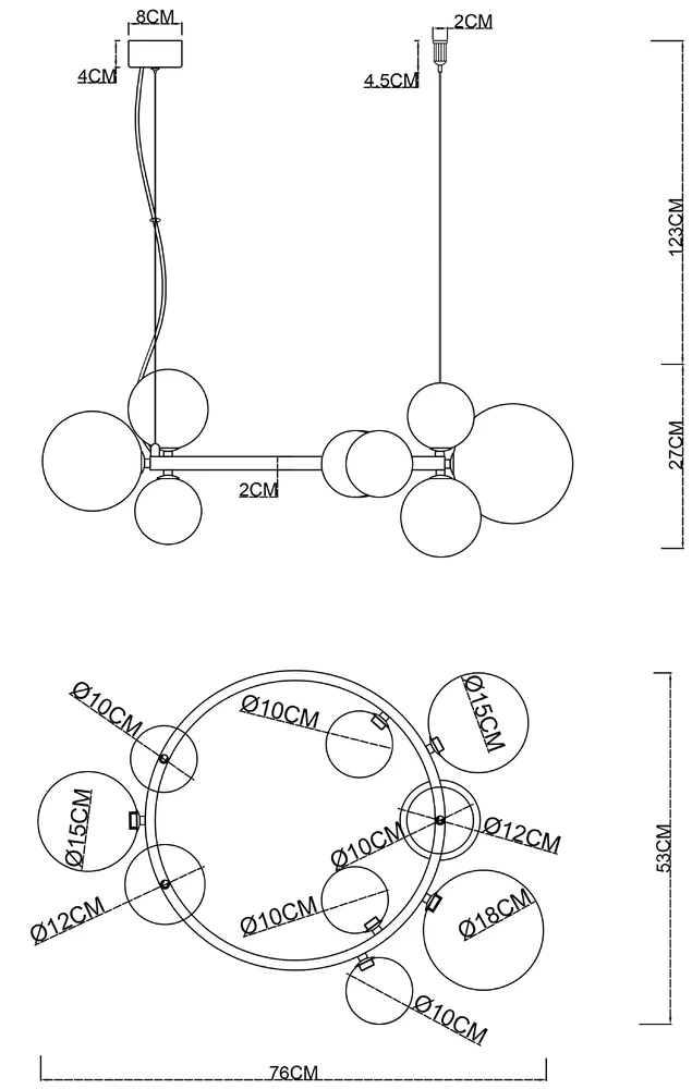 - Цвет плафонов: Прозрачный