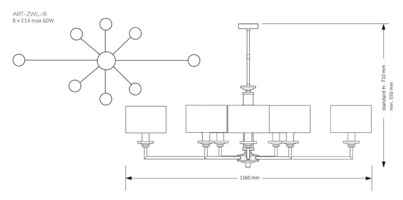 - Количество ламп: 8 шт