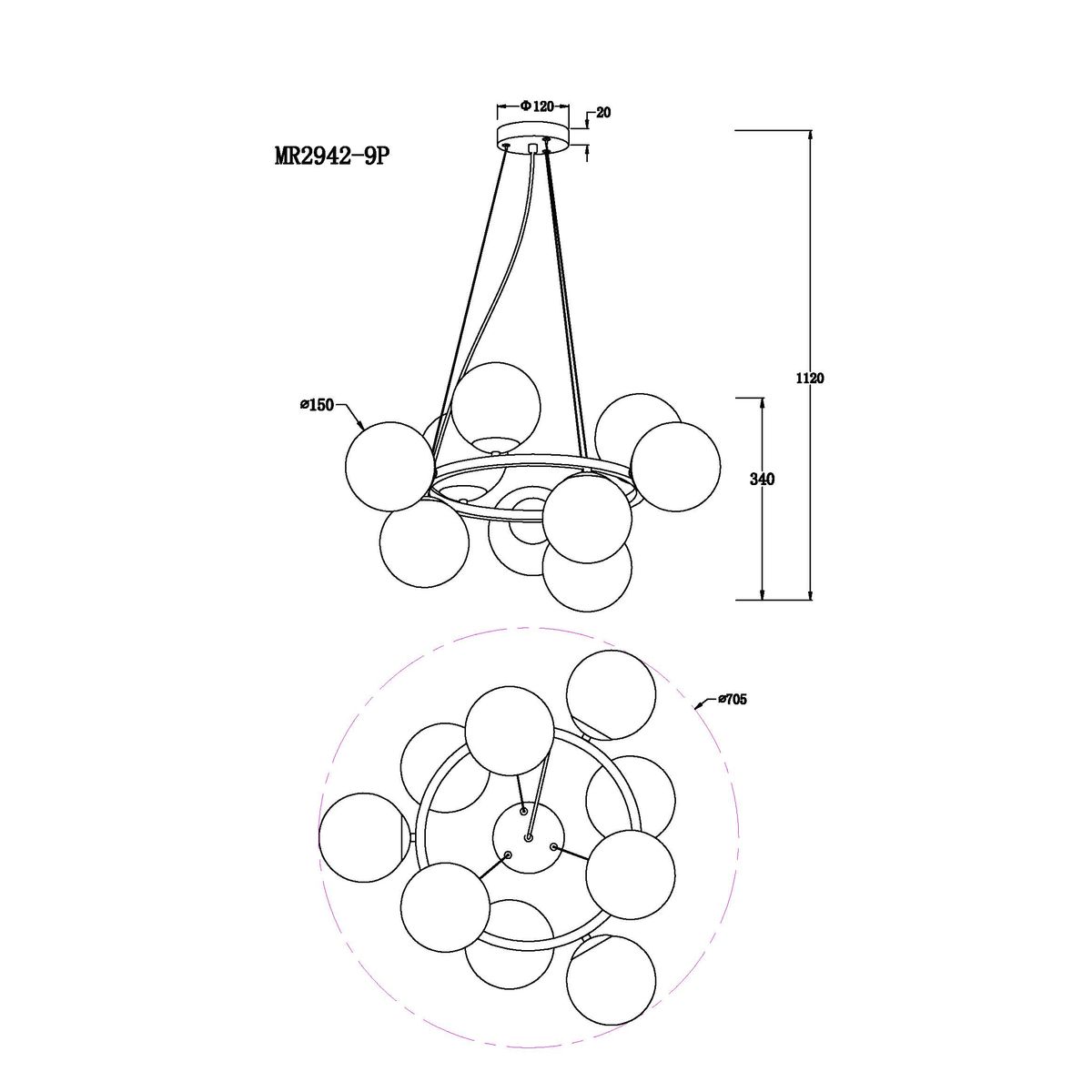 Купить "Подвесная люстра MyFar Aerton MR2942-9P"