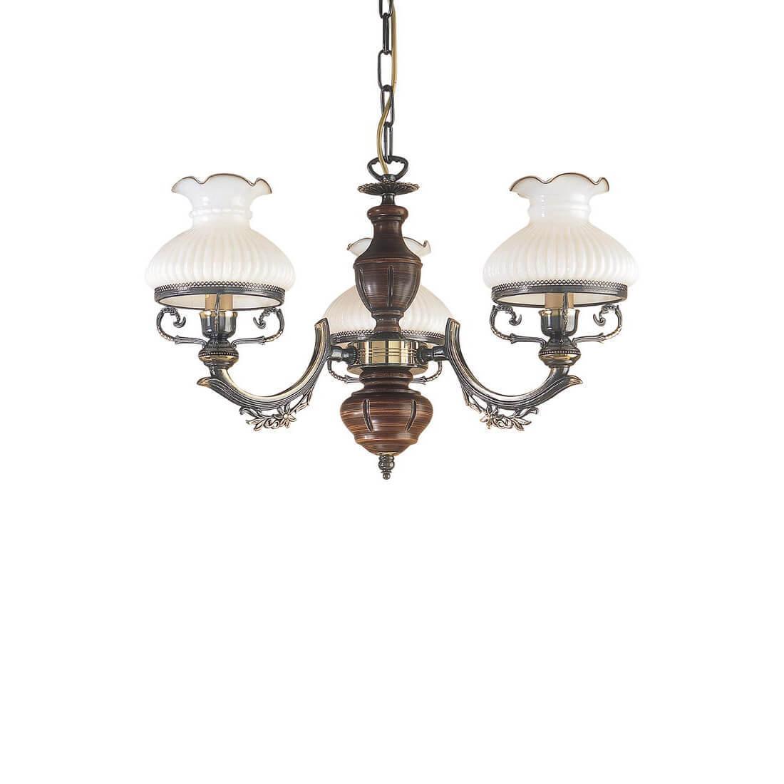 Подвесная люстра Reccagni Angelo L 2810/3 Итальянского производсва – уникальное сочетание высокого качества и удивительных фактур. Этот светильник Классического стиля хорошо подойдет Для спальни и придаст помещению мягкий и приятный свет. Плафоны белые из стекла. Арматура бронза из металла. Кол-во ламп - 3шт. Общая мощность 180W