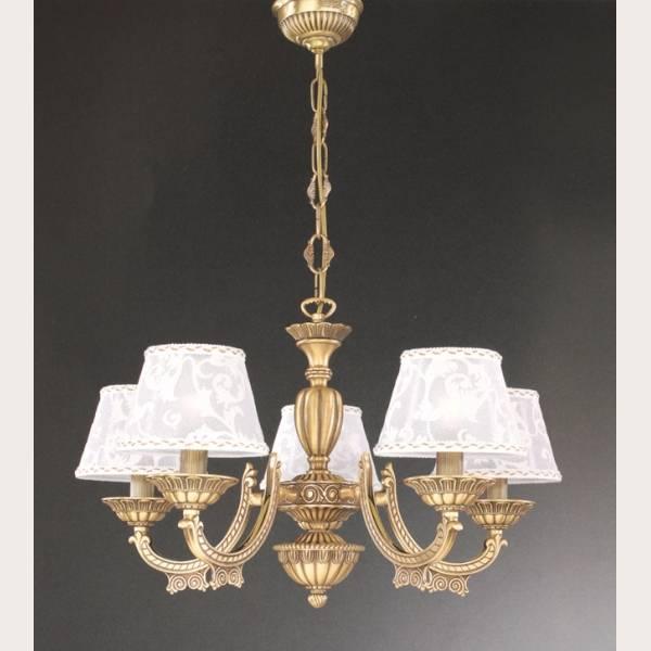 Подвесная люстра Reccagni Angelo L 7432/5 Итальянского производсва – отличный выбор для Вас. Этот светильник Классического стиля хорошо подойдет Для гостиной и придаст помещению мягкий и приятный свет. Плафоны белые из ткани. Арматура бронза из металла. Кол-во ламп - 5шт. Общая мощность 300W