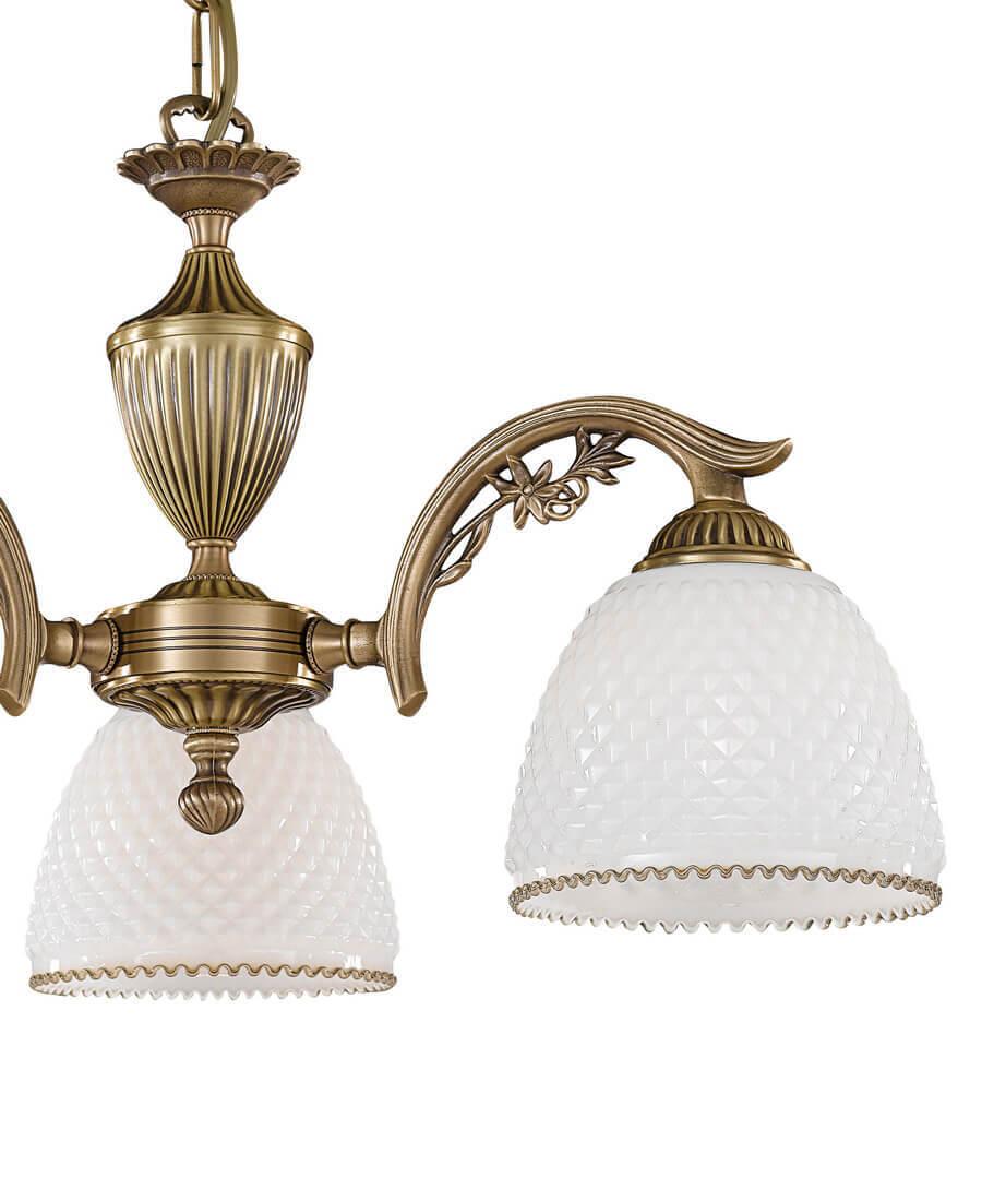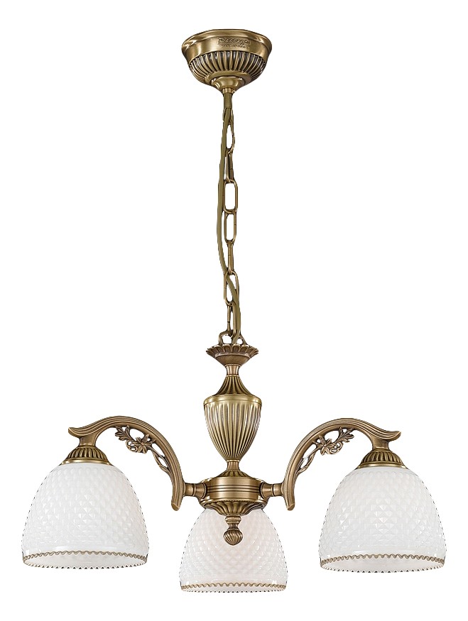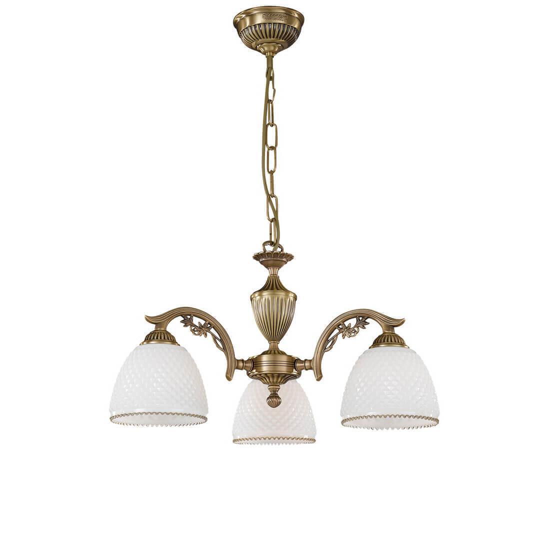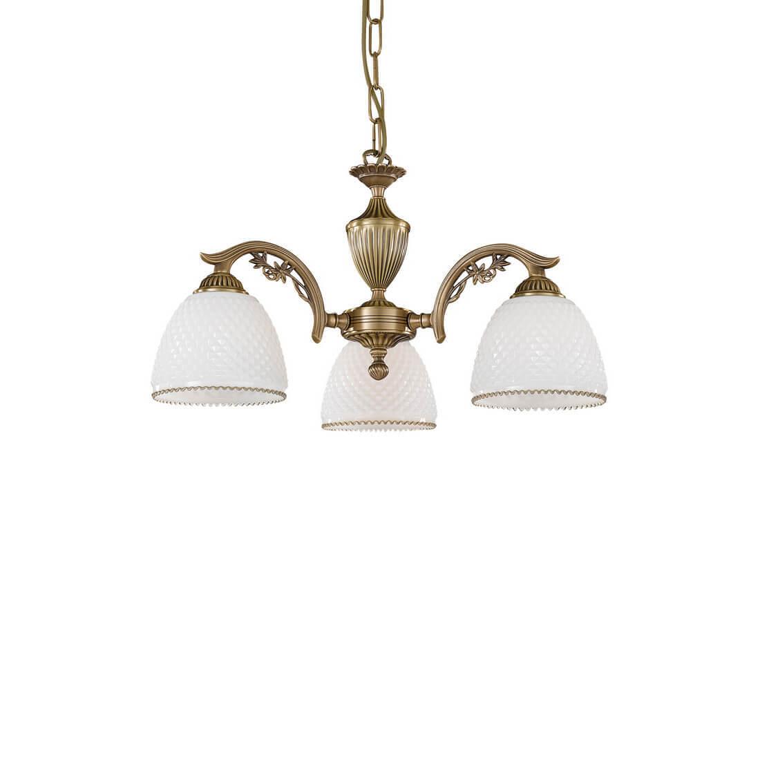 Подвесная люстра Reccagni Angelo L 8601/3 Итальянского производсва – уникальное сочетание высокого качества и удивительных фактур. Этот светильник Классического стиля хорошо подойдет Для спальни и придаст помещению мягкий и приятный свет. Плафоны белые из стекла. Арматура бронза из металла. Кол-во ламп - 3шт. Общая мощность 180W