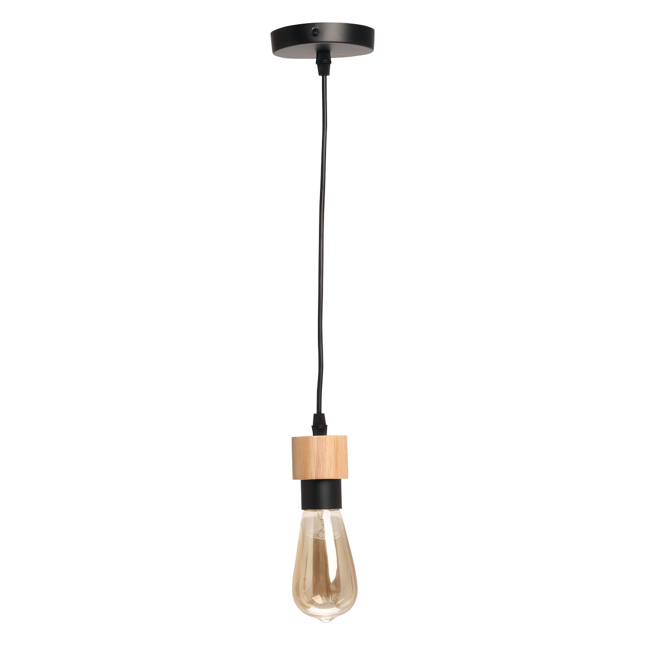 Металлическое основание подвеса окрашено в черный цвет. Подвес декорирован элементом из натурального дерева.
