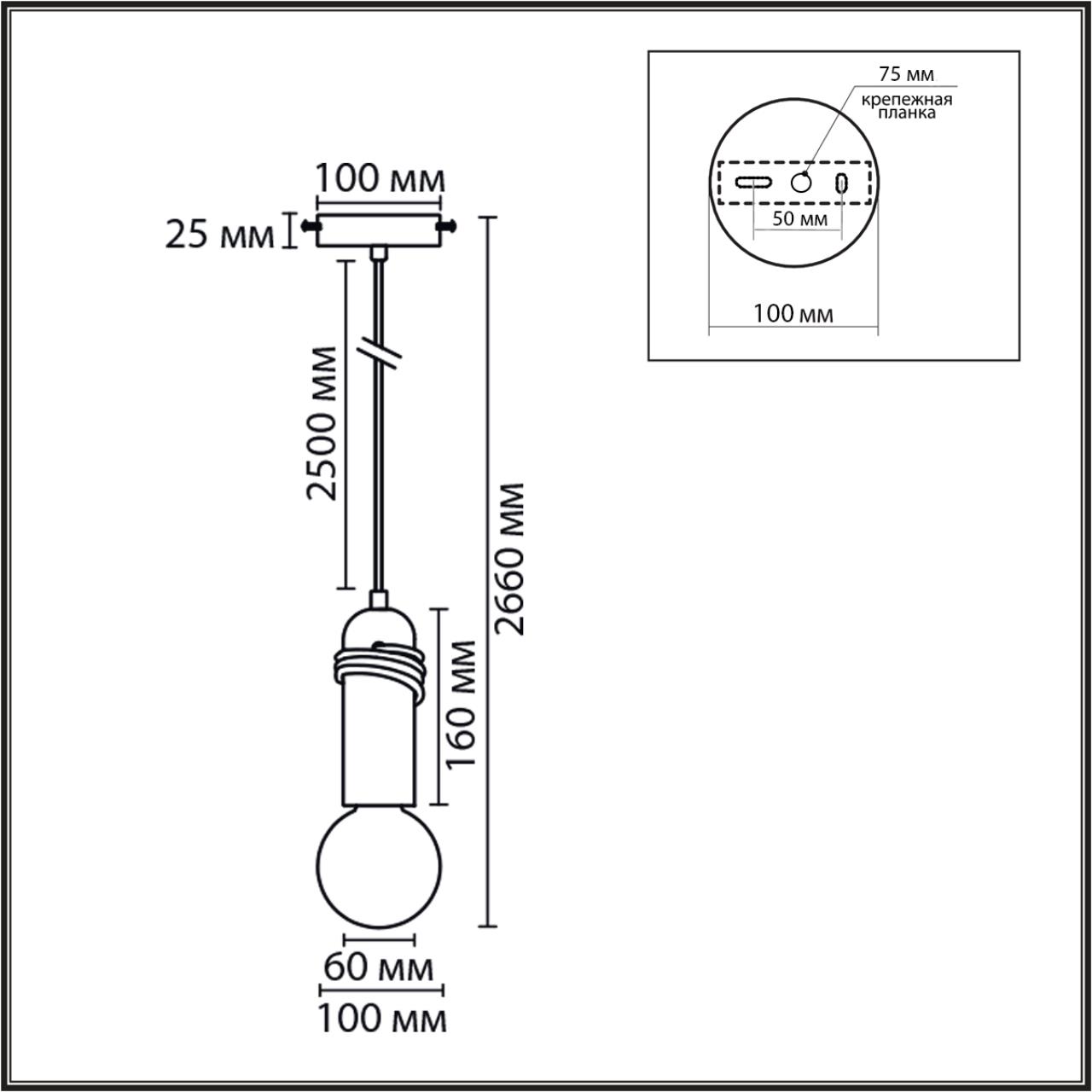 - Форма плафона: Без плафона