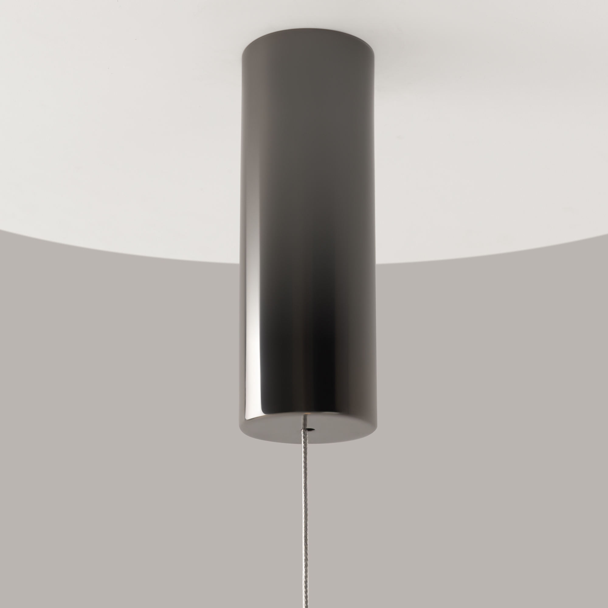 Серия включает подвесной светильник, бра, напольный и портативную модели. Стеклянные плафоны с зеркальным градиентом, черная глянцевая арматура из металла. LED-источник (3000K) скрыт матовым рассеивателем. Конструктивные особенности: магнитные потолочные чаши у подвесов и магнитное основание у бра обеспечивают монтаж без видимого крепежа. Напольный и аккумуляторный светильники диммируются при длительном удержании кнопки. Серия отмечена премиями Red Dot и A’design за инновационный дизайн.