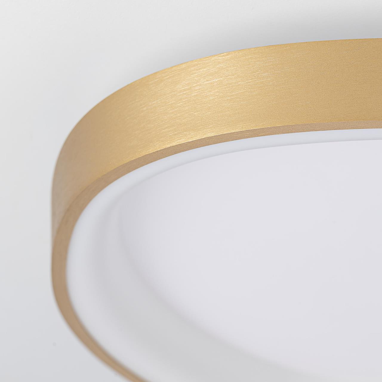Корпус изделия — металлический, стильного золотистого оттенка. Рассеиватель из оптического полимера обеспечивает мягкое, равномерное освещение. LED-модуль с современными светодиодами гарантирует качественный яркий свет, который не вредит зрению.