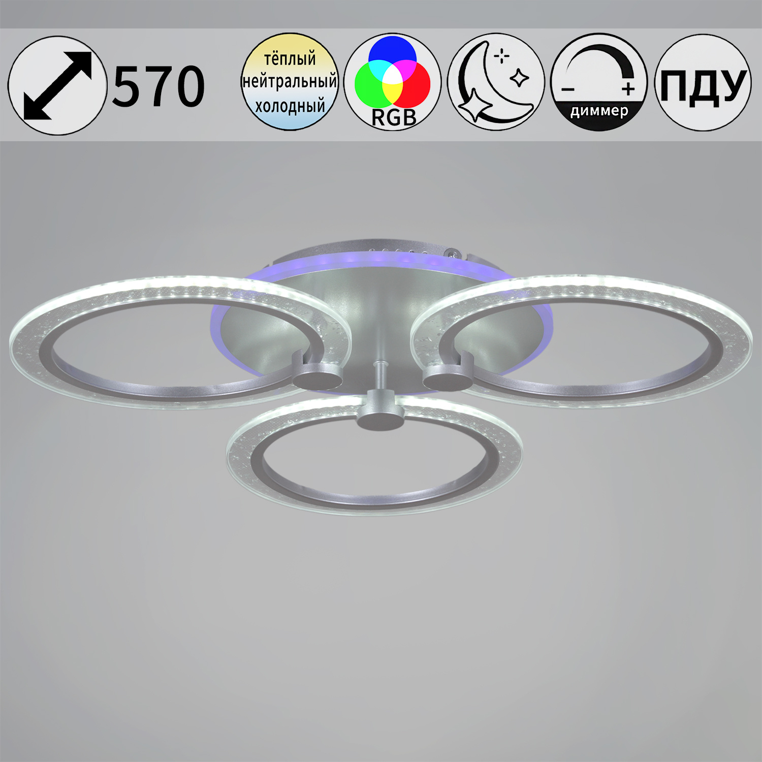 - Технические особенности: С пультом ДУ, С диммером