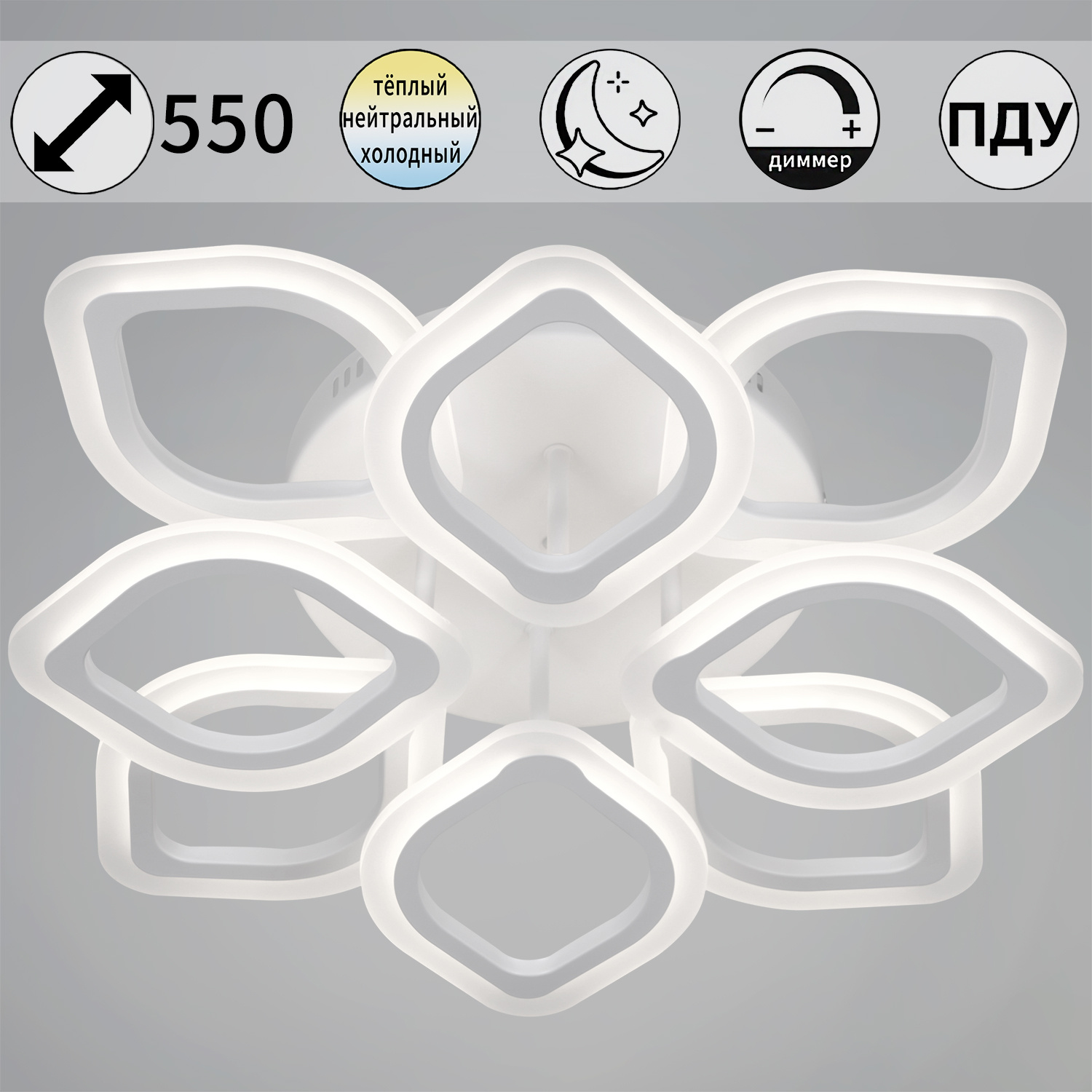 - Технические особенности: С пультом ДУ, С диммером