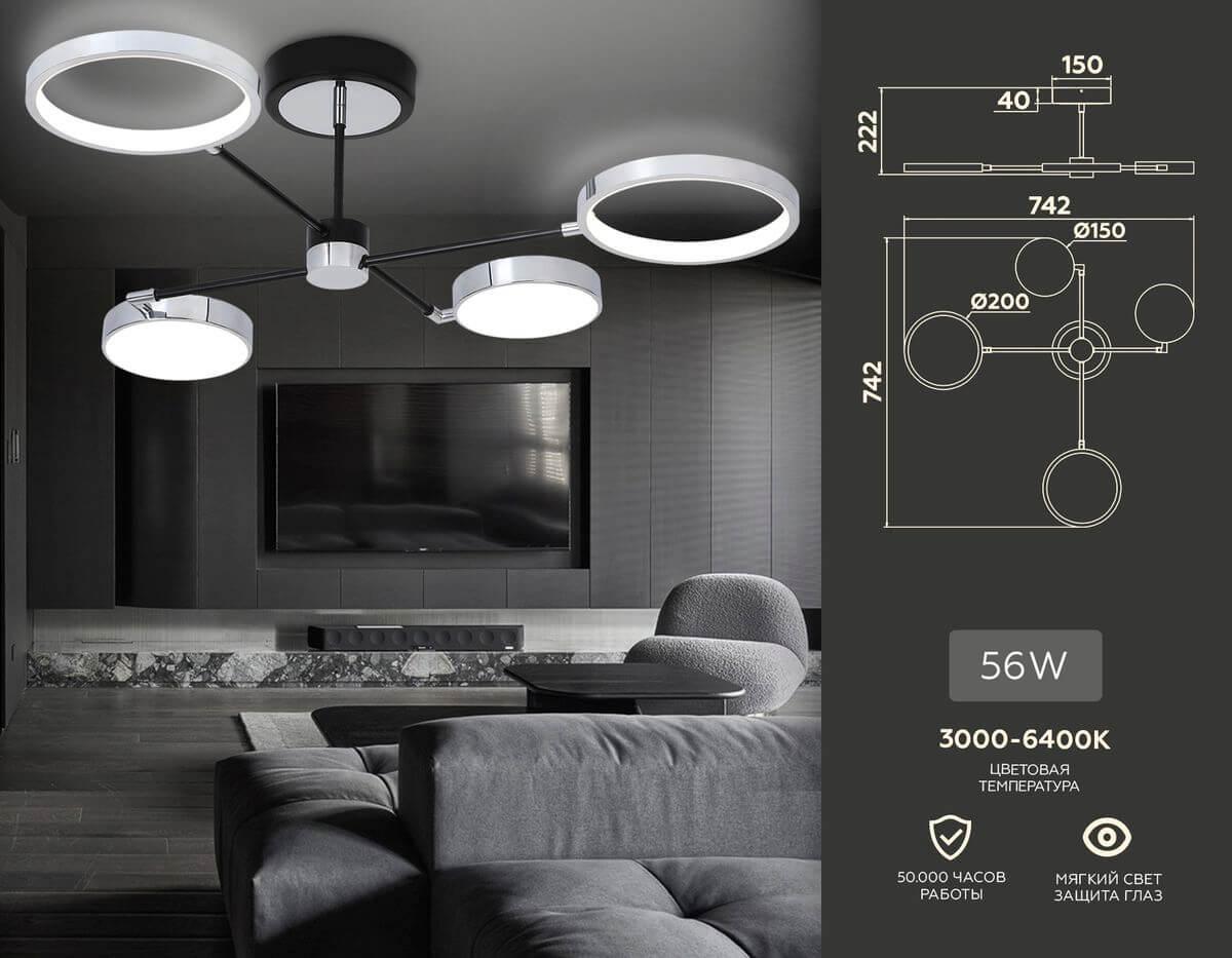 - Цвет плафонов: Хром