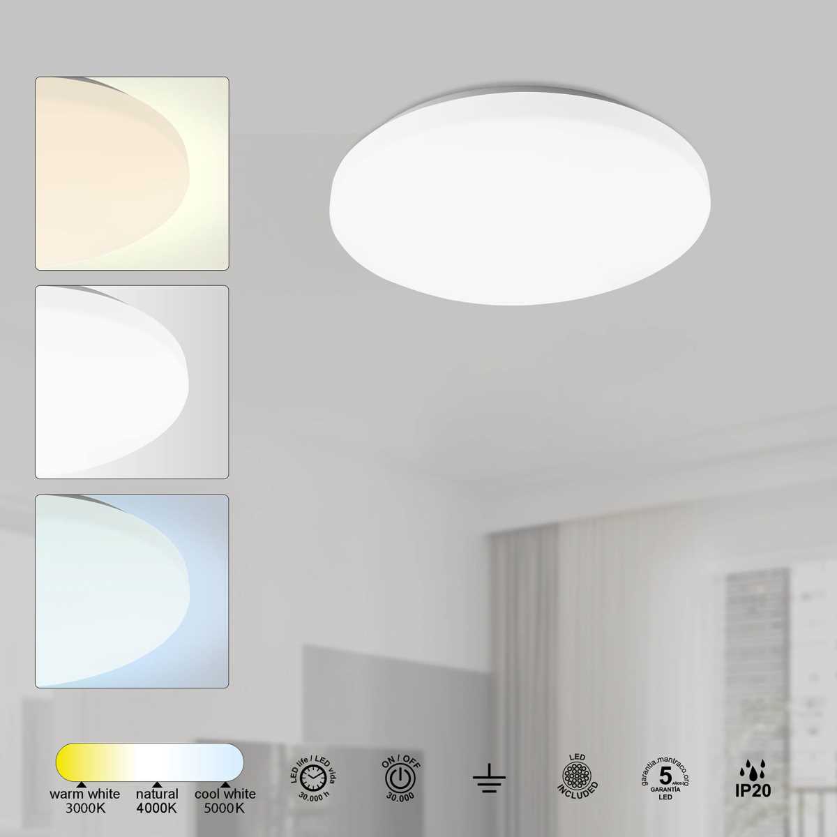 - Цветовая температура, K: 3000-5000K