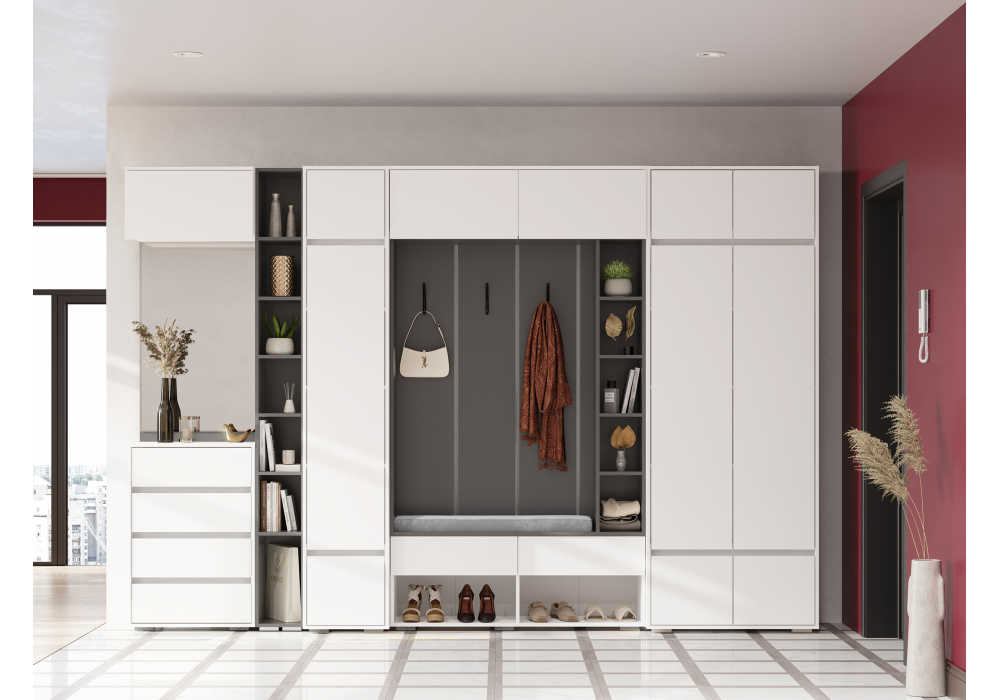 Купить "Прихожая комплектация 2 Woodville Роут белый / графит 620673"