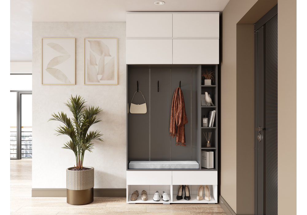Купить "Прихожая комплектация 9 Woodville Роут белый / графит 620678"