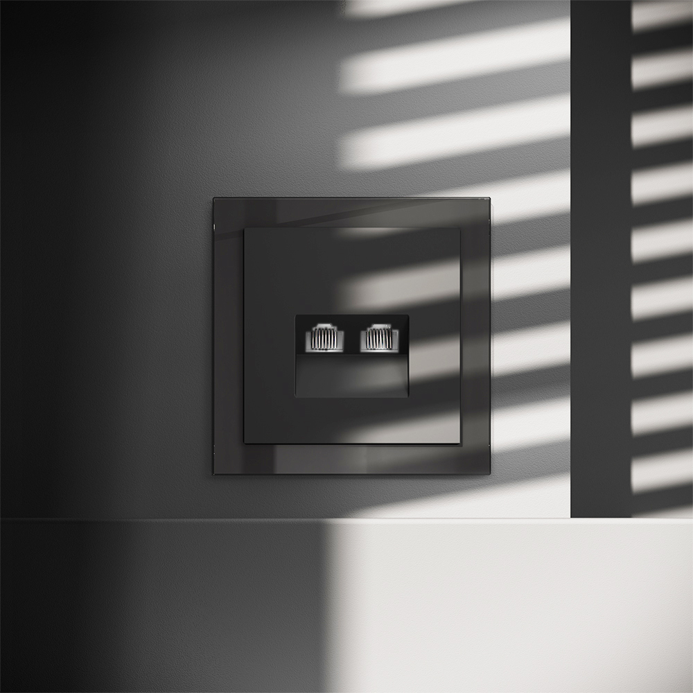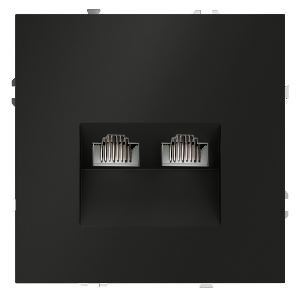 Купить "Розетка компьютерная встраиваемая двойная RJ45+RJ45 кат.6 Voltum S70 VLS060208 (черный матовый)"