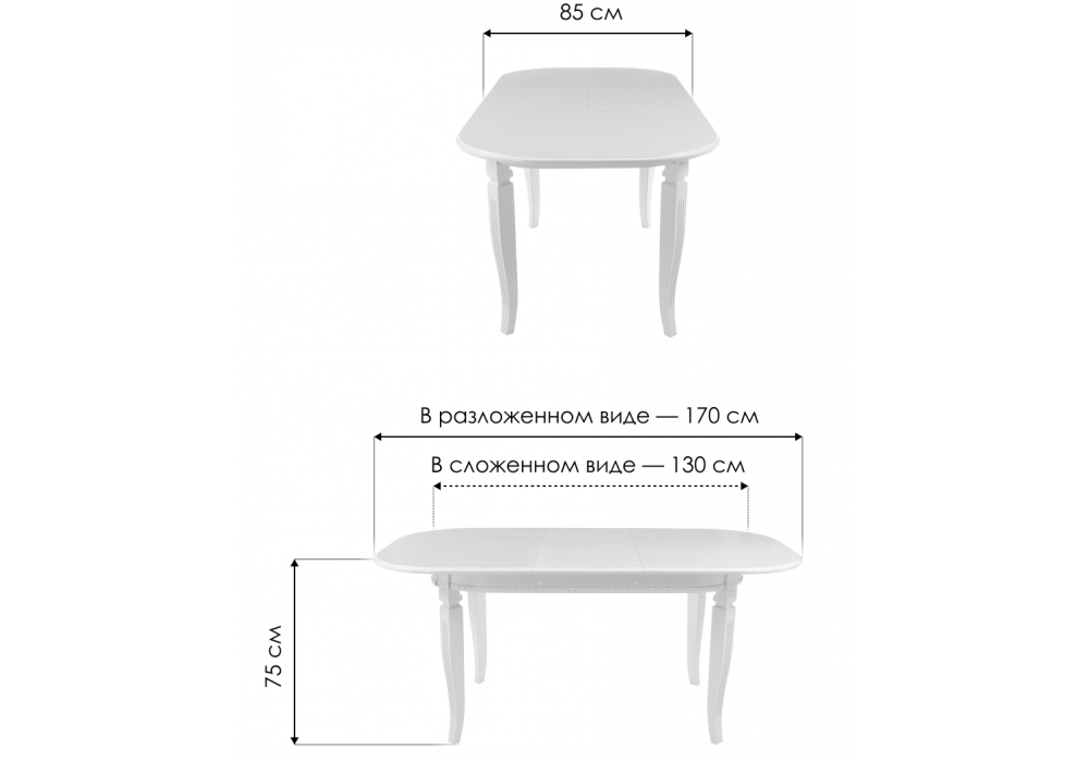 Материал каркаса - массив бука; Материал столешницы - Шпон; Ширина - 85; Высота - 75; Длина стола в разложенном виде - 170; Длина - 130;
