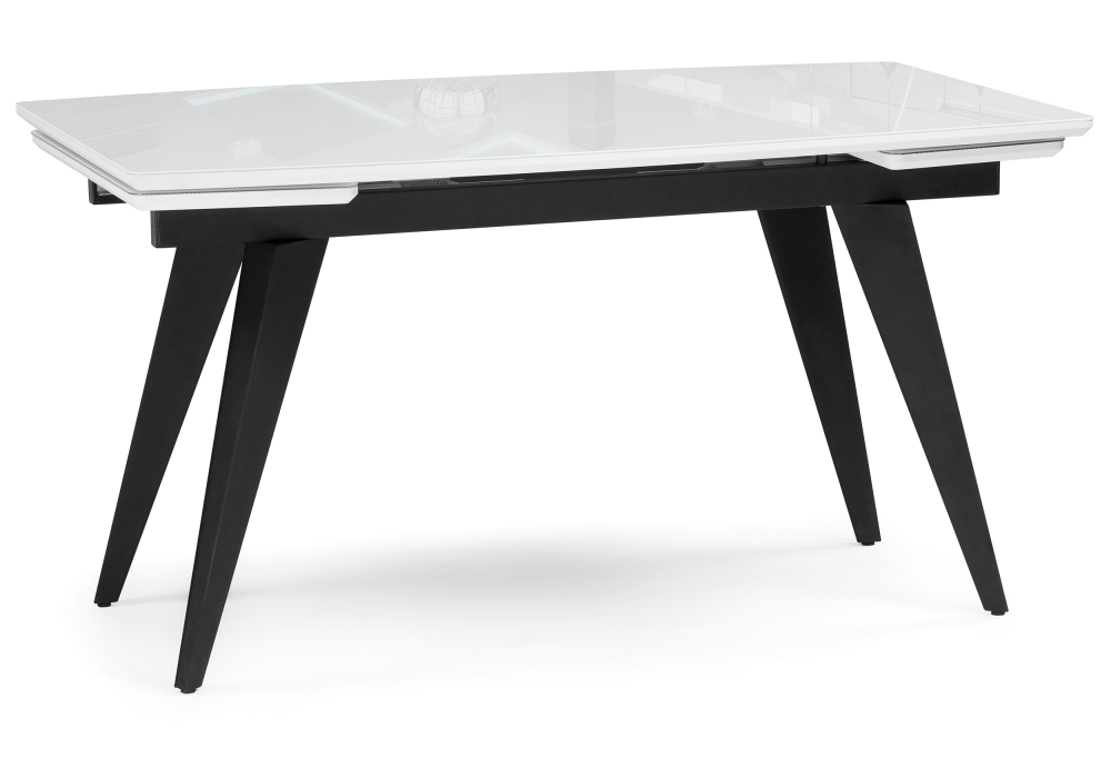 Материал каркаса - Металл; Материал ножек - Металл; Материал столешницы - Стекло; Цвет каркаса - Черный; Цвет ножек - Черный; Цвет столешницы - Белый; Ширина - 80; Высота - 74; Длина стола в разложенном виде - 200; Длина - 140;