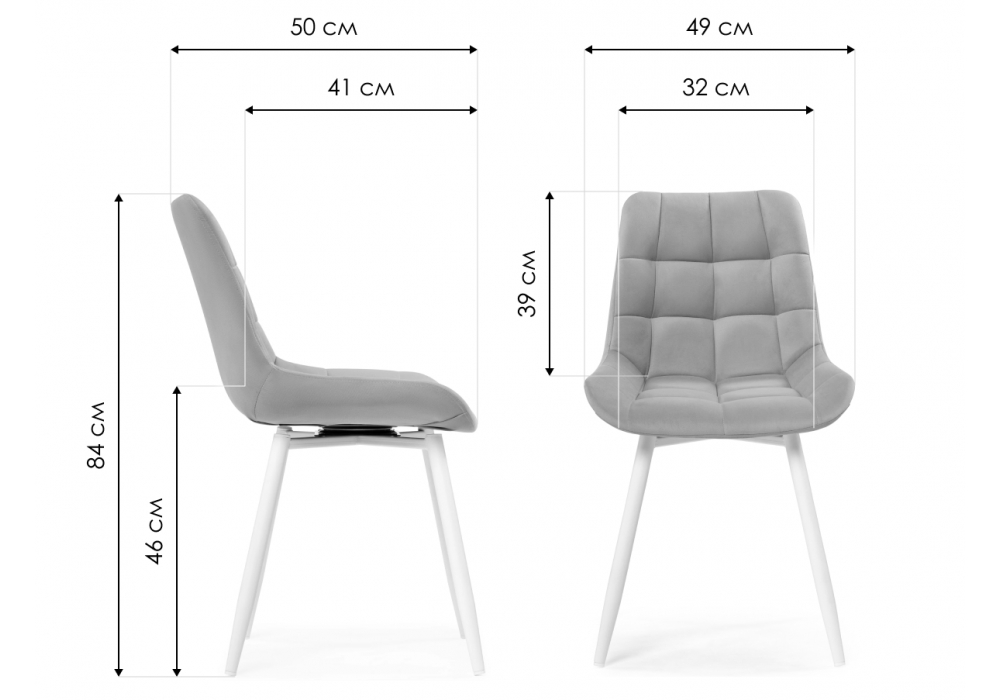 Материал каркаса - металл; Материал сиденья - велюр; Материал обивки - велюр; Цвет ножек - черный; Ширина - 49; Глубина - 50; Высота - 84; Ширина сиденья - 32; Глубина сиденья - 41; Высота сиденья - 46;
