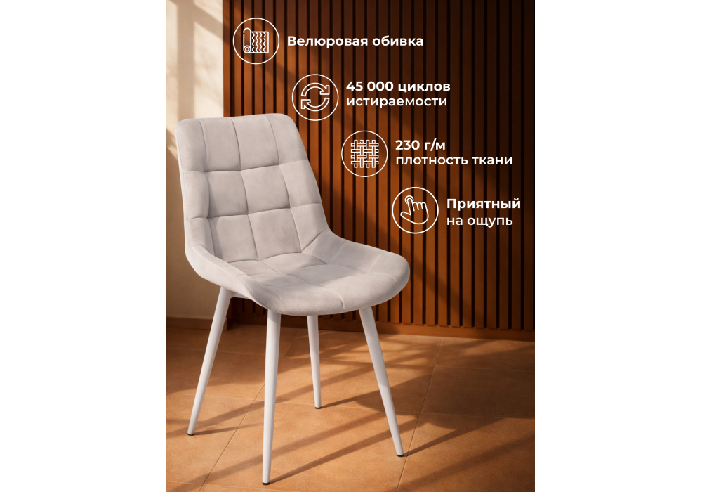 Материал каркаса - металл; Материал сиденья - велюр; Материал обивки - велюр; Цвет ножек - серый; Ширина - 50; Глубина - 60; Высота - 80; Ширина сиденья - 44; Глубина сиденья - 41; Высота сиденья - 48;