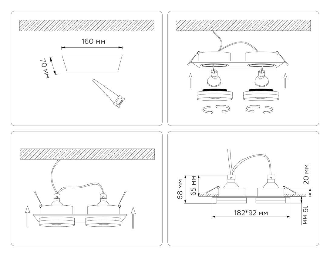 - Подходит для натяжных потолков: Да, при условии использования светодиодных ламп