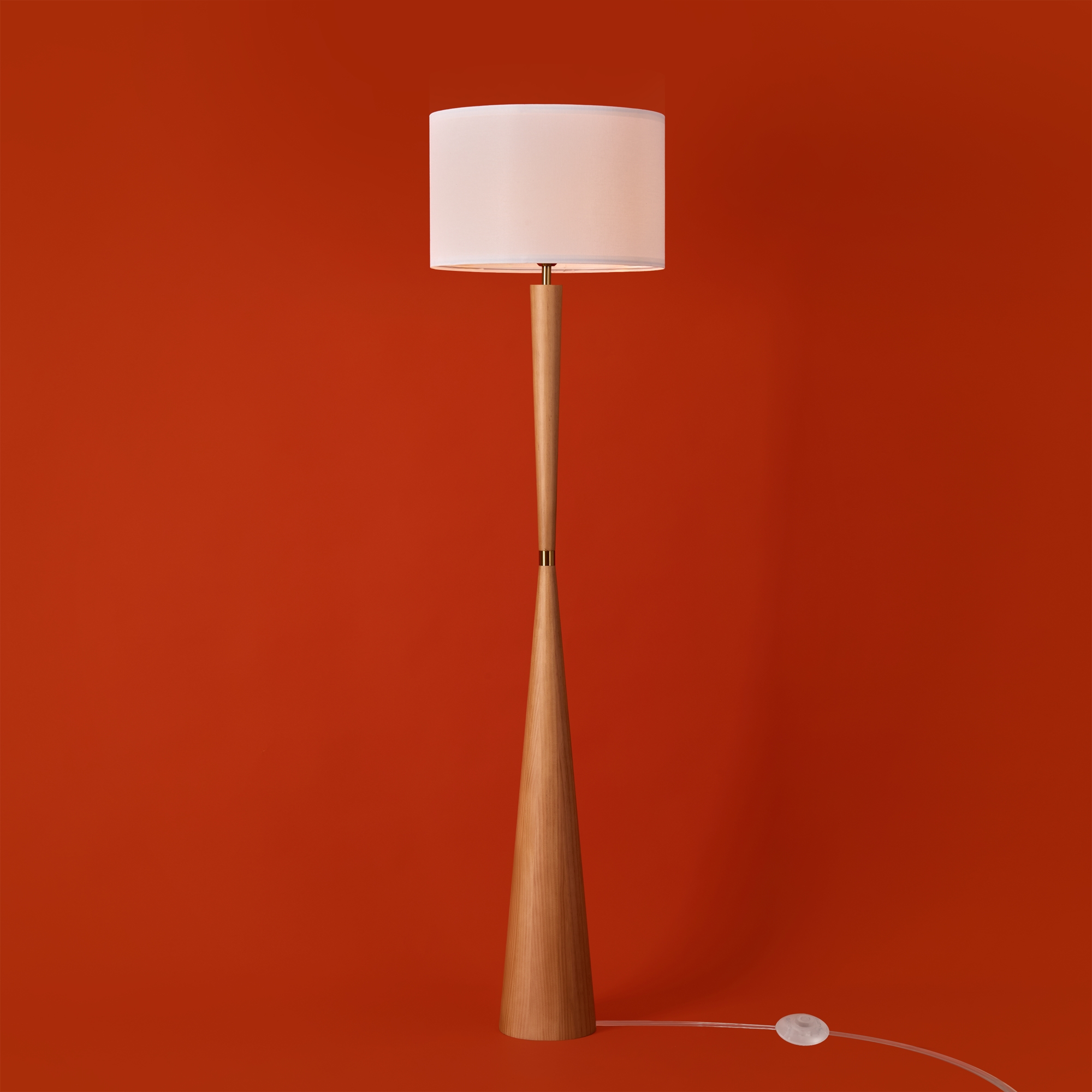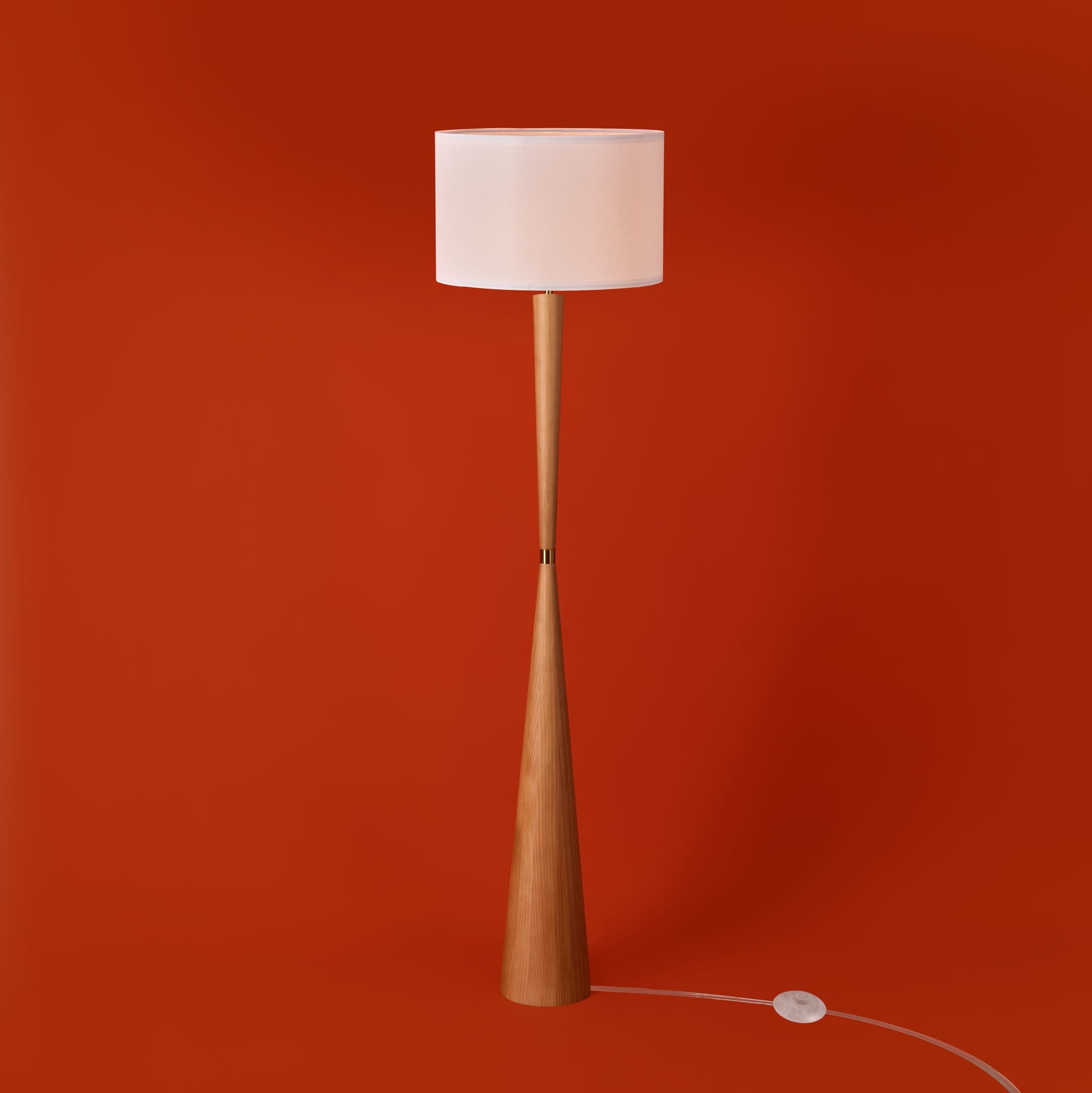Арматура — металл. Деревянное разборное основание. Тканевый абажур белого цвета. Источник света — лампа E27 (не в комплекте).