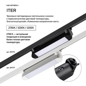 Трековый светильник однофазный двухжильный светодиодный с переключателем цветовой температуры Novotech ITER 359791 черный