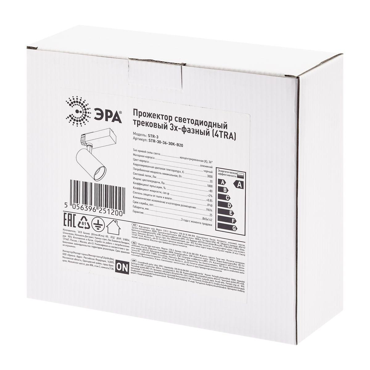 Купить "Трековый светодиодный светильник ЭРА SТR-30-36-30K-B20 Б0049778"