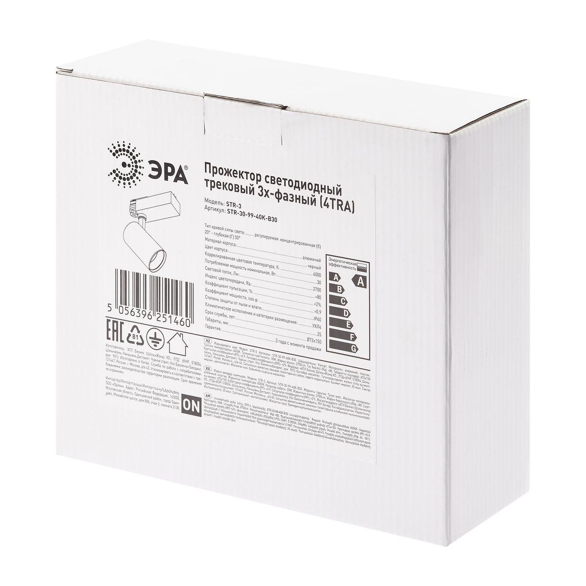 Трековый светодиодный светильник ЭРА STR-30-99-40K-B30 Б0049791 в Твери