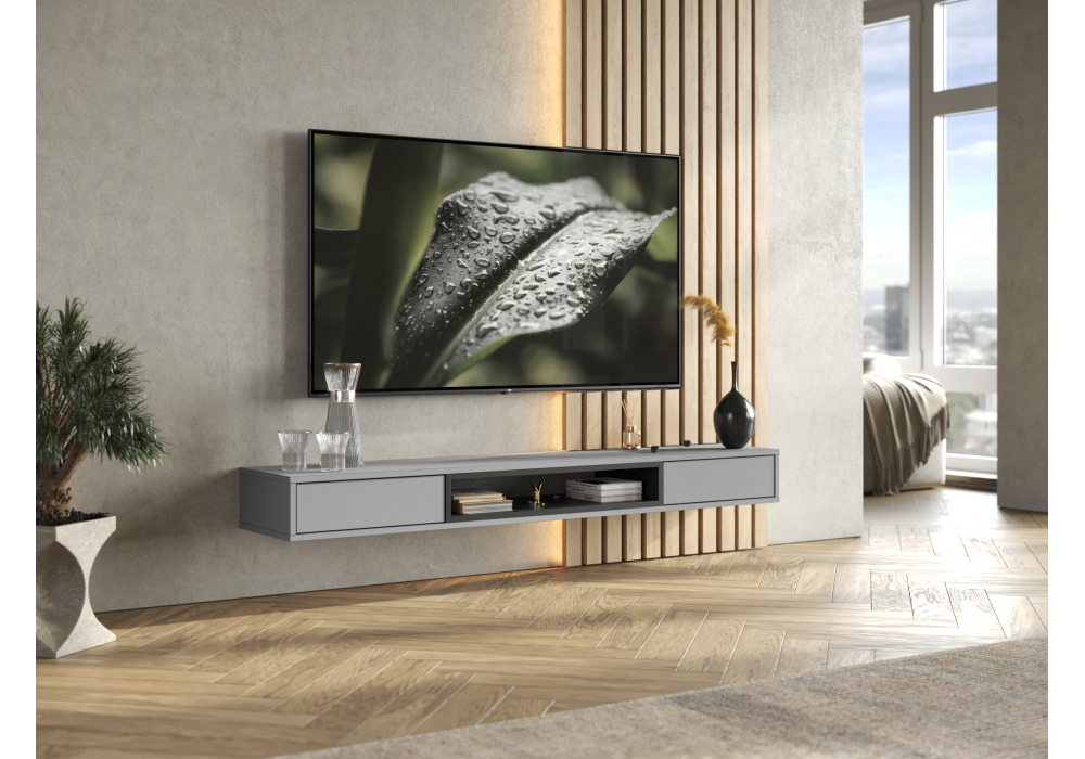 Купить "ТВ-тумба Woodville Делора 1,6м шиншилла серая / черный 674715"