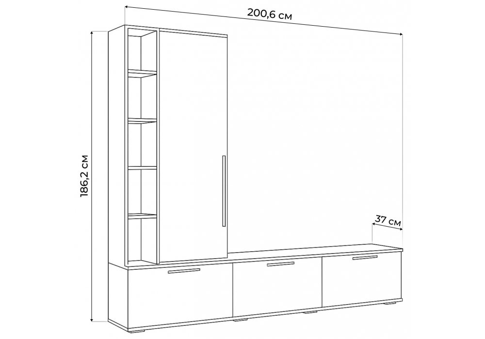 Материал каркаса - ЛДСП; Ширина - 200,6; Глубина - 37; Высота - 186,2;