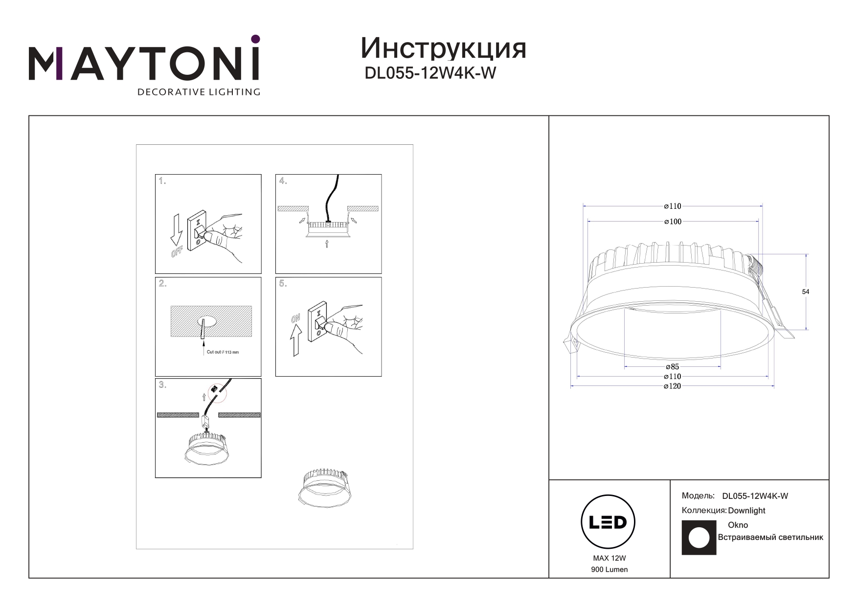 Все характеристики DL055-12W4K-W