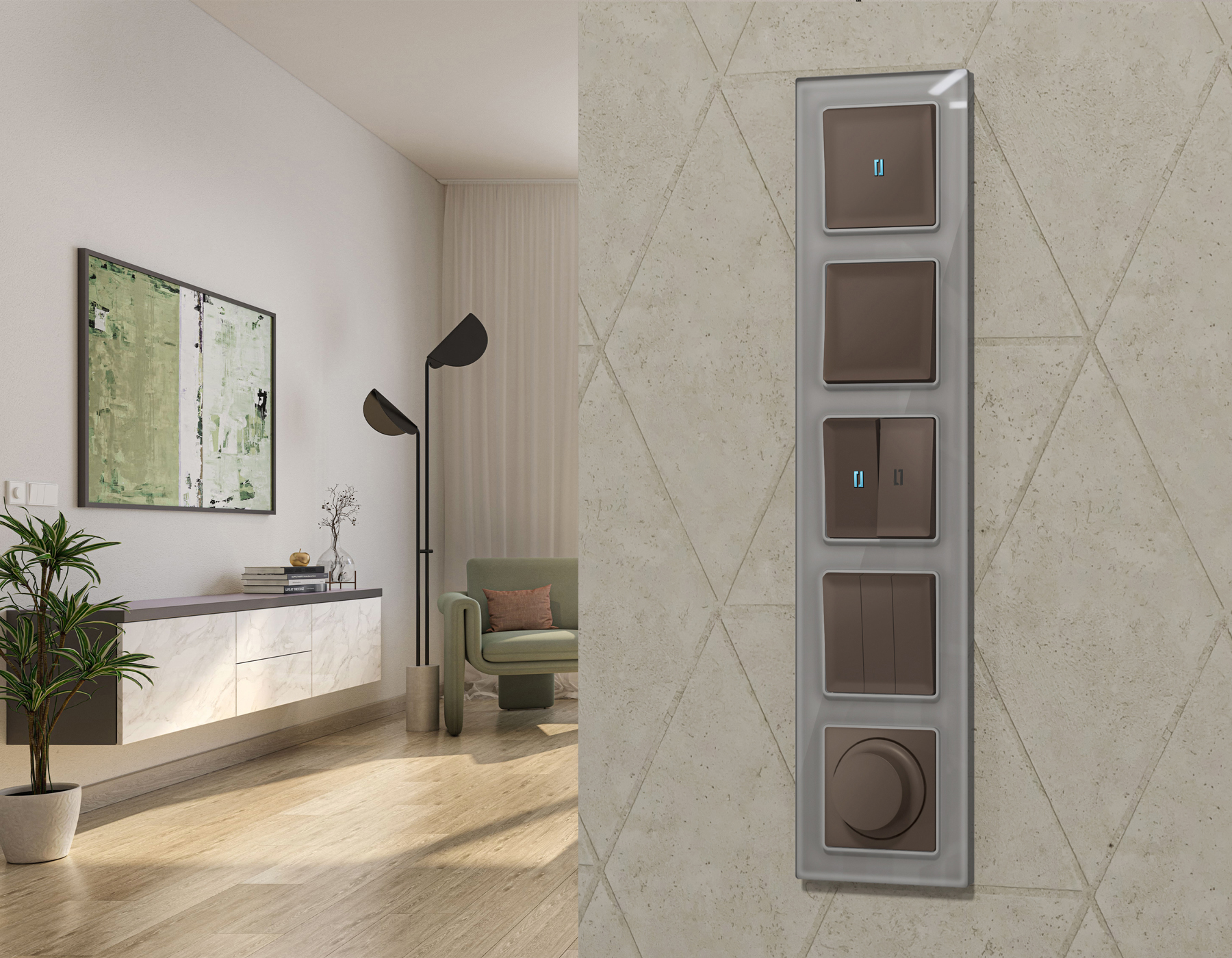 Многогранный ассортимент Ambrella Volt включает в себя механизмы, лицевые панели и рамки, а также комплекты, доступные в различных цветовых решениях. Продукция представлена в модульном исполнении, что позволяет гибко настраивать внешний вид и функциональность. Вам будет легко заменить лицевую панель, рамку или механизм, найдя идеальное сочетание цветов.